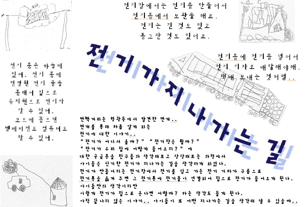 ¢Ü ¾ÆÀ̵éÀÇ °á·ÐÀº..!! ¡° Áý¸¶´Ù ¿¬°áµÇ¾îÀÖ´Â ±¸¸§ÀÌ ÀÖ¾î¼ Àü±âÅë°ú ¿¬°áµÈ Àü±â ÁÙÀÌ À¯Ä¡¿øÀ¸·Î ÁýÀ¸·Î ¿À°Ô µÈ´Ù.¡° ´Ü¼øÇÑ Çü±¤µîÀÇ ºÒºû¿¡¼ ¹øÂ½°Å¸®´Â ¹ø°³.. ±×¸®°í Àü±âÀÇ ¹ß°ß!! È®½ÇÇÏÁö´Â ¾ÊÁö¸¸ ¹«¾ùÀΰ¡ »ý°¢Çس»°í ±×°Í¿¡ ´ëÇÑ ¿¬°á¼ºÀ» ã¾Æ °í¹ÎÇÏ´Â °Í¿¡¼ »õ·Ó°Ô ÅÂ¾î³ Àü±â°¡ Áö³ª°¡´Â ±æÀÌ ¿Ï¼ºµÇ¾ú´Ù. ¾ÆÀ̵éÀÌ Å©¸é¼ Àü±â¿¡ ´ëÇÑ À̾߱⸦ Çϸç ÀڽŵéÀÌ ¸¸µé¾ú´ø Àü±â°¡ Áö³ª°¡´Â ±æÀ» »ý°¢Çغ¼ ¼ö ÀÖ´Â ±âȸ°¡ µÇ¾úÀ¸¸é ÇÑ´Ù...