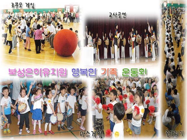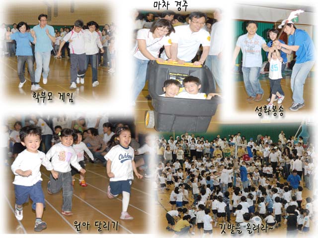 - ¾î¿ï¸² ¸¶´ç : Çкθð´ÔµéÀÌ ÇϳªµÇ¾î ·¹Å©·¹ÀÌ¼Ç ¿ùµåÄÅ ÀÀ¿ø°¡¿¡ ¸ÂÃç Çкθð´ÔµéÀÇ ²ÀÁöÁ¡ ´í½º¸¦ ÃçºÁ¿ä. - ¿ø¾Æ 50M´Þ¸®±â : ûÆÀ, ¹éÆÀº°(¿¬·Éº°) ¿ø¾Æ ´Þ¸®±â - Çкθð°ÔÀÓ(2ÀÎ3°¢) : ¾Æ¹öÁö, ¾î¸Ó´Ï ¸ðµÎ ÇÑ ¸¶À½ ÇÑ ¶æÀÌ µÇ¾î ´Þ¸®±â - ¸¶Â÷°æÁÖ : ¸¶Â÷¿¡ À¯¾Æ¸¦ Å¿î ÈÄ, ºÎ¸ð´ÔÀÌ ¹ÝȯÁ¡À» µ¹¶ó¿À´Â °ÔÀÓ - Èû¸ð¾Æ Á¡ÇÁ¸¦... : õ À§¿¡ ¿Ã¶ó ¼± ºÎ¸ð´ÔµéÀÌ µ¿½Ã¿¡ Á¡ÇÁ¸¦ ÇÏ¿© õÀ» »© ³»´Â °ÔÀÓ - ±ê¹ßÀ» ¿Ã·Á¶ó. : ÀÚ½ÅÀÇ ¹Ù±¸´Ï¿¡ ÄáÁָӴϸ¦ ´øÁ®³Ö¾î ÆÀ ±ê¹ßÀ» ¿Ã¸®´Â °ÔÀÓ - ½Å¸±·¹ÀÌ(800M°èÁÖ) : ¼±»ý´Ô°ú Çкθð´Ô°ú ¿ø¾Æ°¡ ÇÑ ÆÀÀÌ µÇ¾î ´Þ¸®´Â °ÔÀÓ